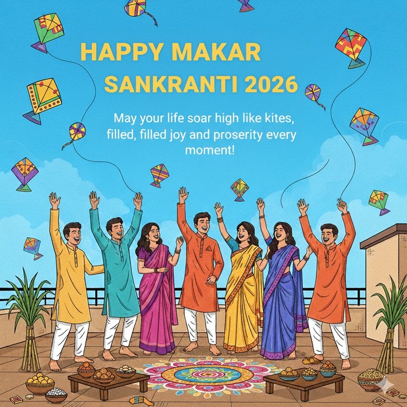 On this auspicious occasion, people exchange Makar Sankranti wishes, images, posters, and greeting messages to spread positivity, prosperity, and joy. With the rise of digital communication, festive wishes have evolved from handwritten cards to beautifully designed images, posters, WhatsApp status visuals, and social media creatives.